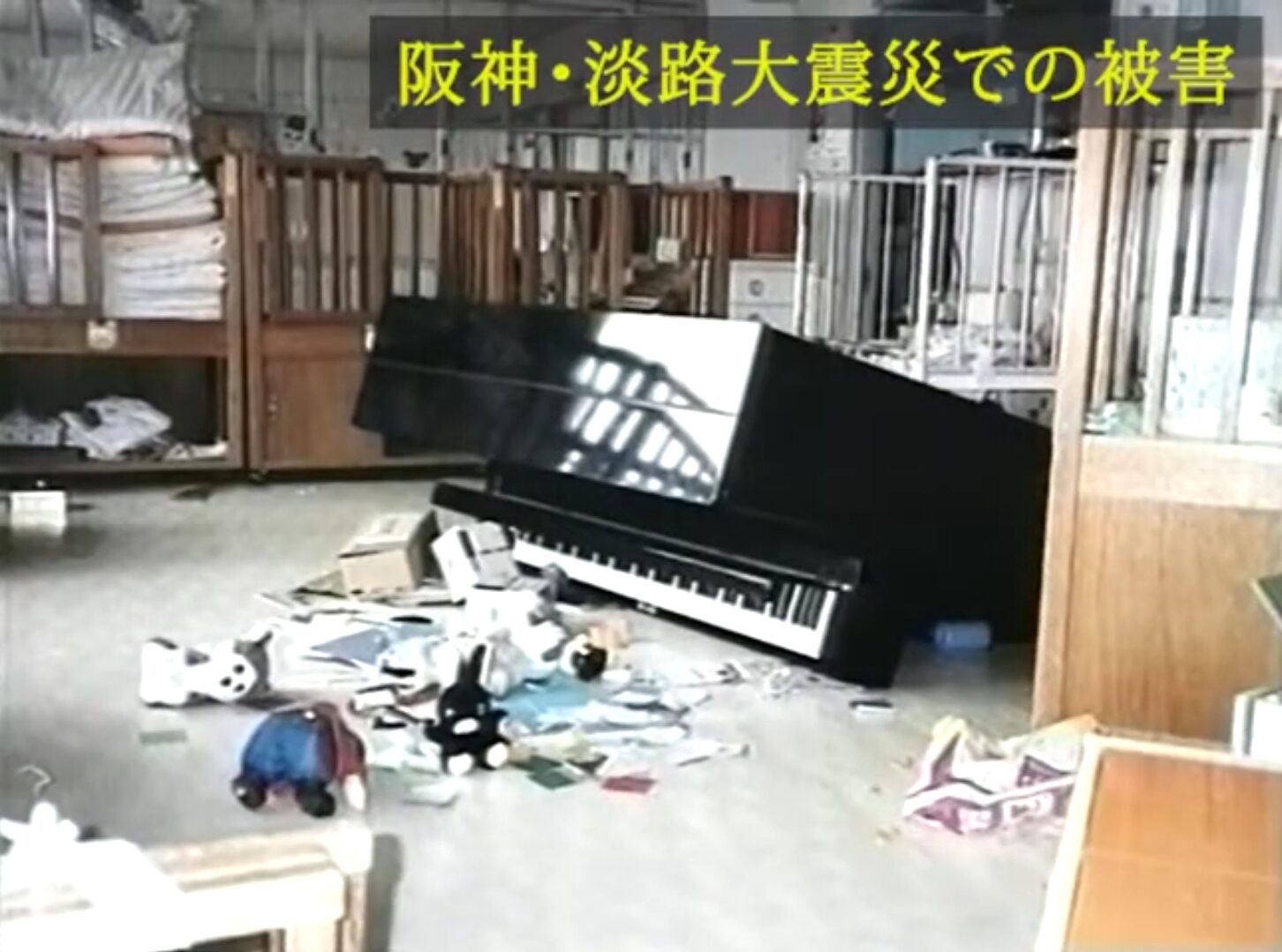 阪神大地震時,有不少平台鋼琴不敵搖晃琴腳斷裂、倒地的案例;日本鋼琴職人針對損害原因進行研究,設計出強化平台鋼琴的全方位固定支架。