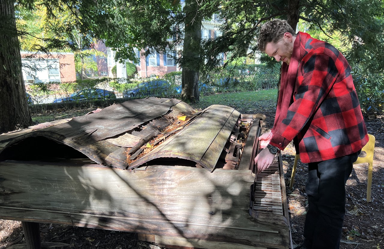 美國布朗大學的學生Haruta去年(2023),將一台退役的Baldwin鋼琴,放置在校園的森林一處,讓它暴露於自然環境,同時鼓勵大家與鋼琴互動。