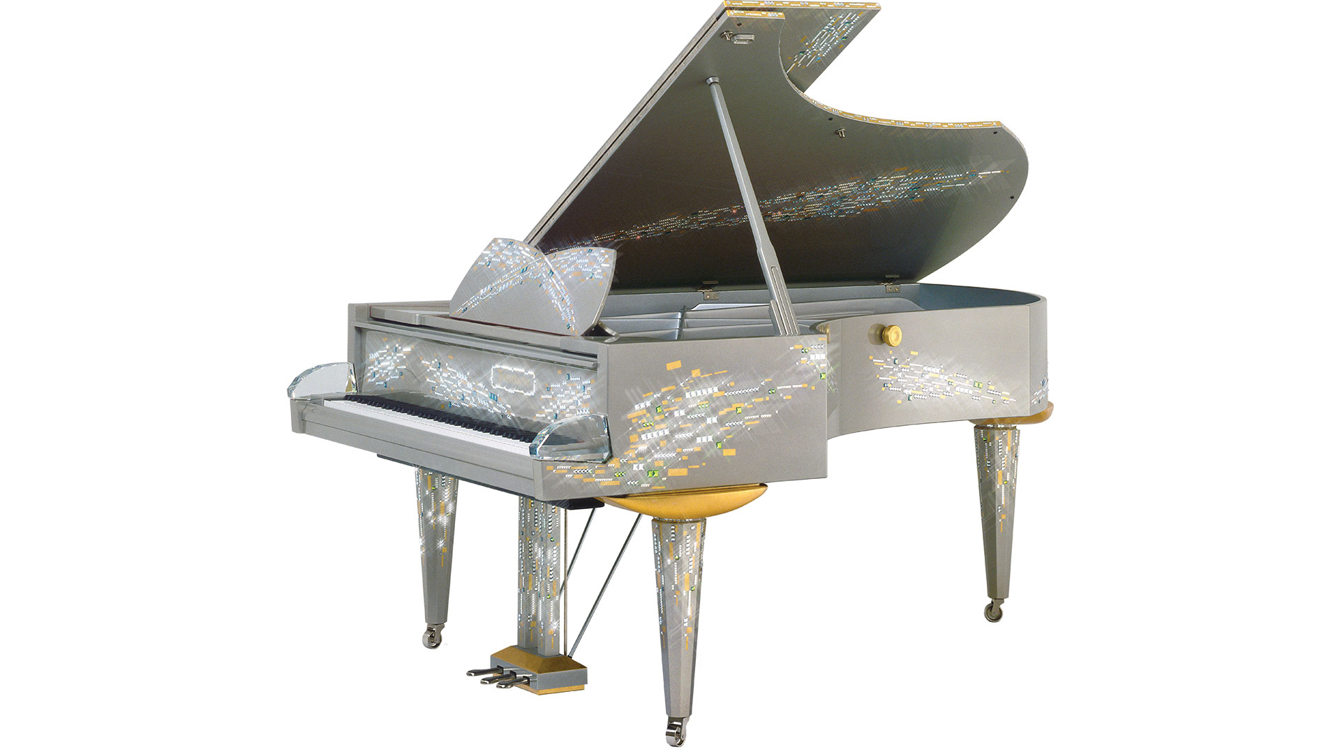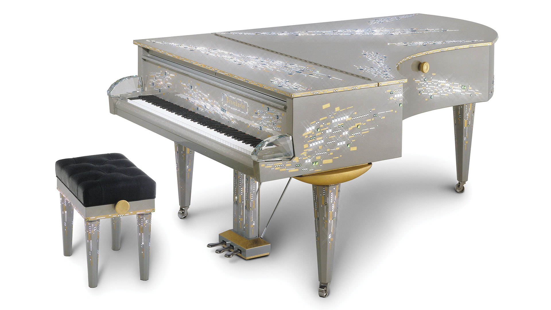 奧地利鋼琴名廠 Bösendorfer 曾於 175 週年推出限量鋼琴,琴身嵌有超過 8000 顆施華洛世奇水晶,部分部件還使用金箔點綴,全球僅三台,是典藏級逸品。