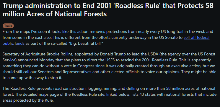 這起新聞的源頭,可追溯至川普政府試圖刪除《Roadless Rule》的計畫。