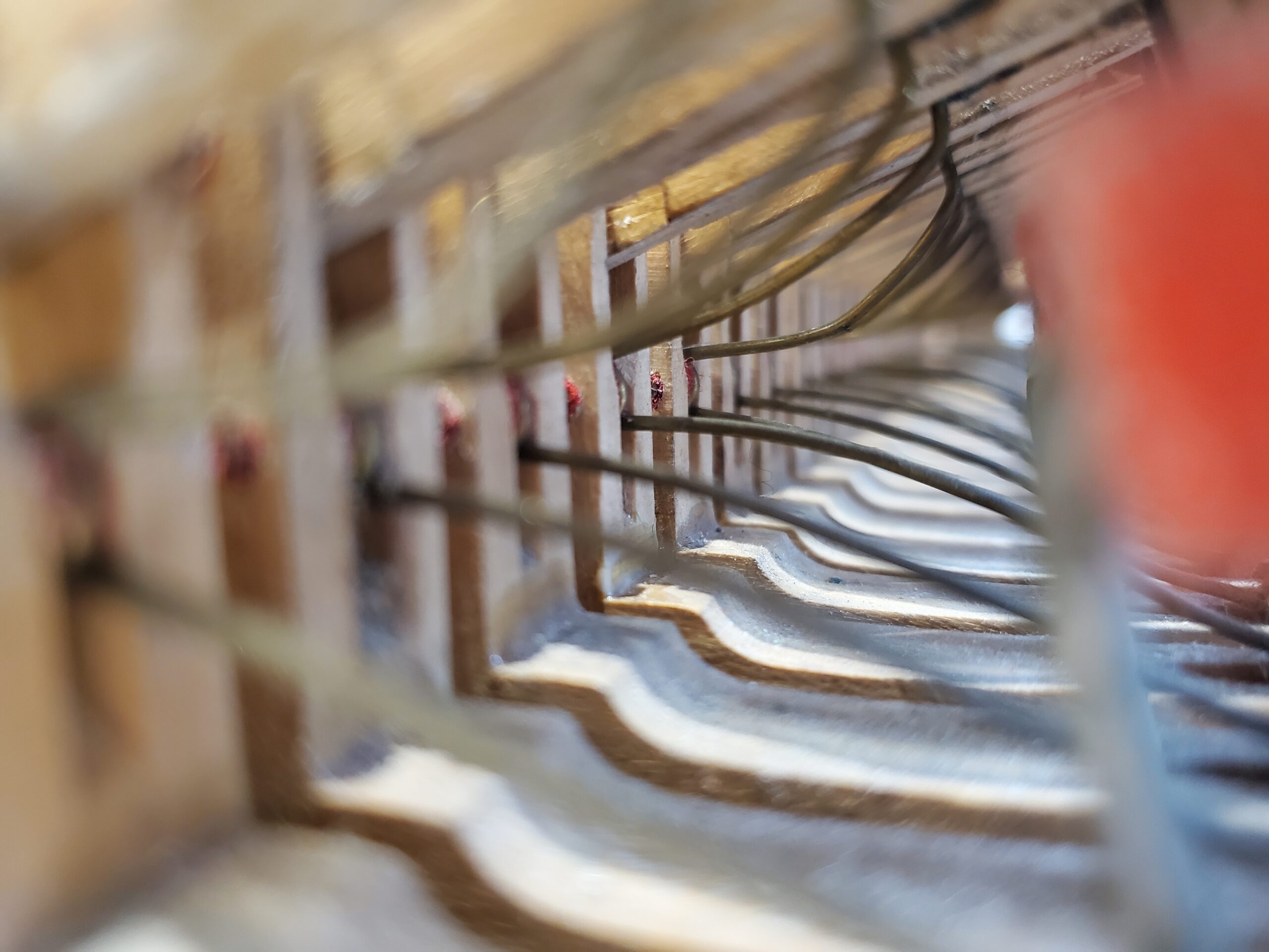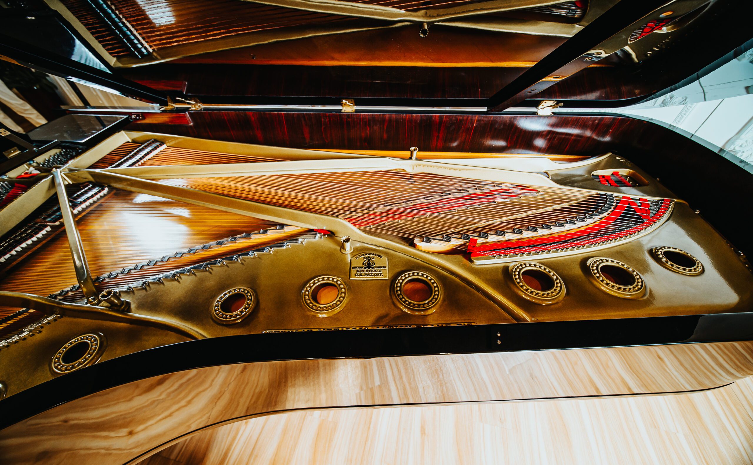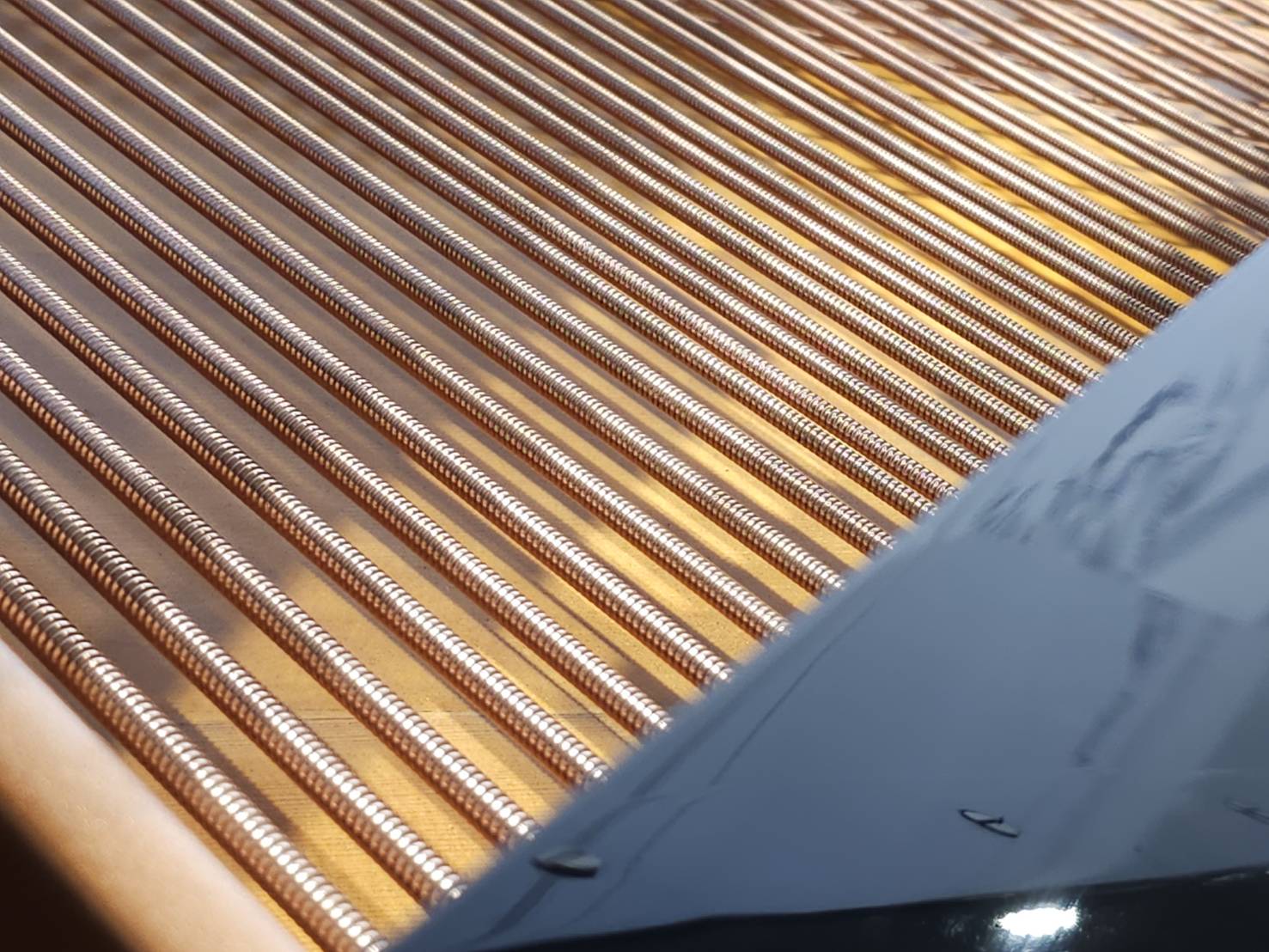 史坦威的琴弦以高碳鋼與純銅手工製成,依不同音域精密纏繞與調音,確保每條弦都具備完美張力與音色。