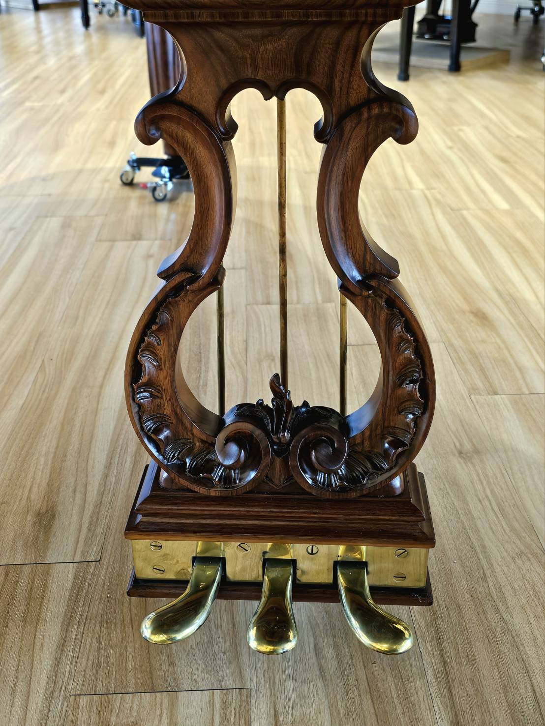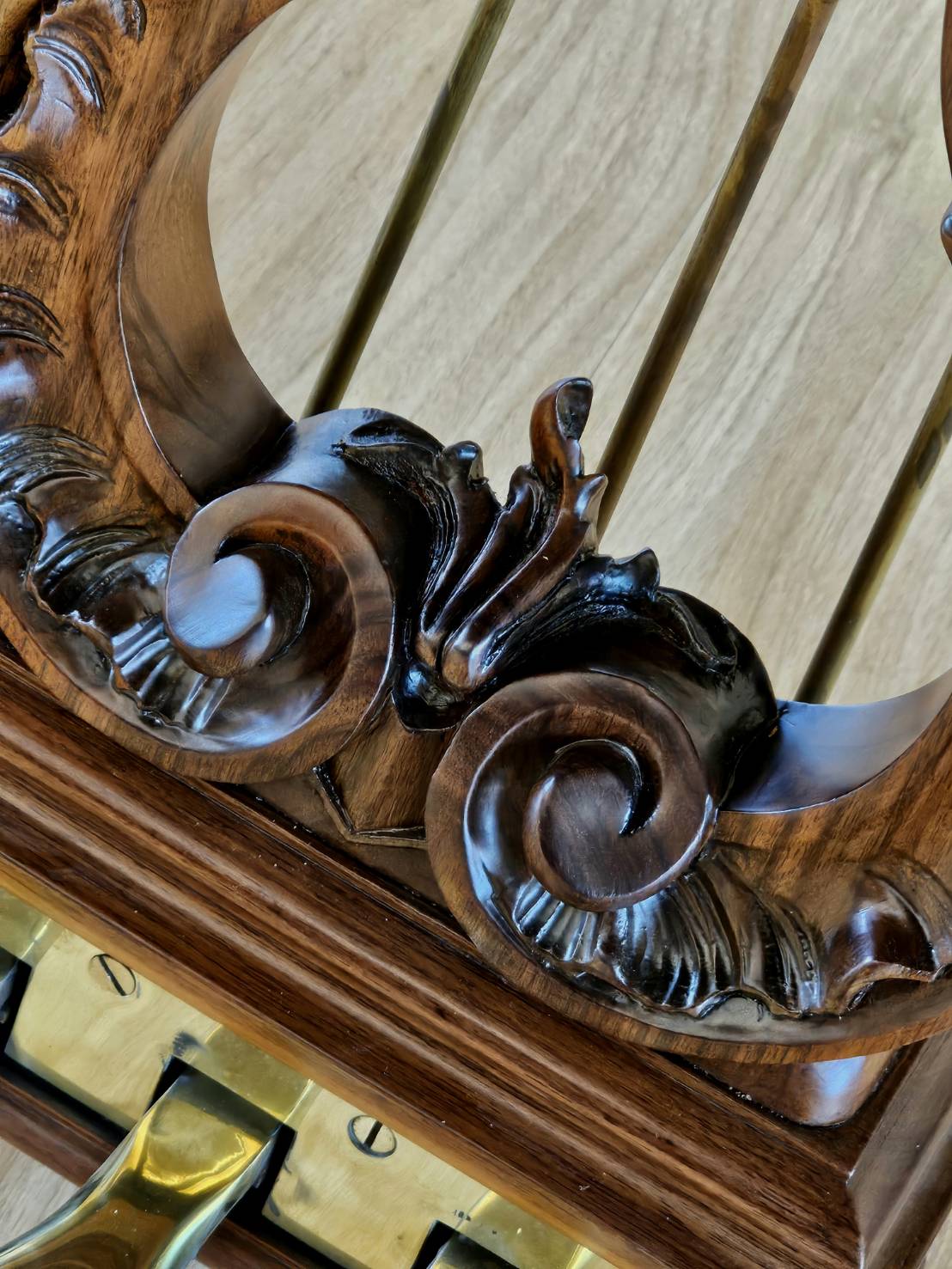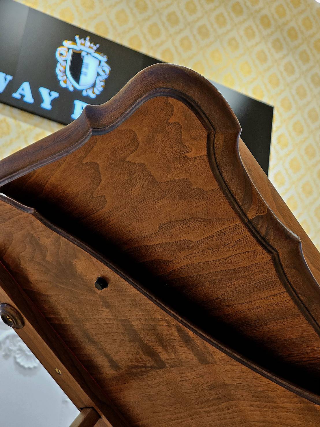 華美的胡桃木融入路易十五Louis XV雕刻風格,琴蓋更採用華麗的扇形裝飾,彰顯精緻工藝與古典美感,將18世紀法國的優雅風華細膩呈現於整體造型中。